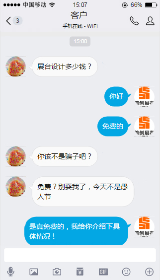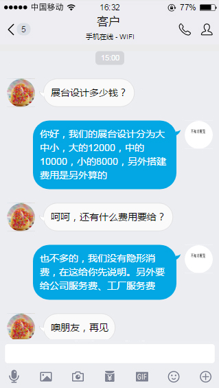 免費設計展臺是真實還是陷阱?先來看看某客戶的與某展覽商的對話: