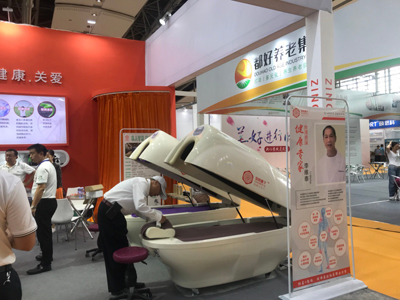 老博會展館位于A區(qū)的5.2展館。記者走訪發(fā)現(xiàn),老博會一點也不老,反而科技感十足?!盎ヂ?lián)網(wǎng)+社區(qū)醫(yī)療康復養(yǎng)護體系”正在成為養(yǎng)老服務的新潮流。