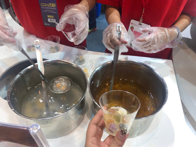本屆廣博會展館中,餐博會展館共有5個,數(shù)量最多、占地面積最大。一進入餐博會展館所在的B區(qū),就可以聞到陣陣美食香氣迎面而來??梢哉f,一場餐博會走下來,可以掌握目前國內(nèi)餐飲美食的流行趨勢。根據(jù)官方公布的數(shù)據(jù),本次餐博會展館共有1000多家餐飲品牌商參展。